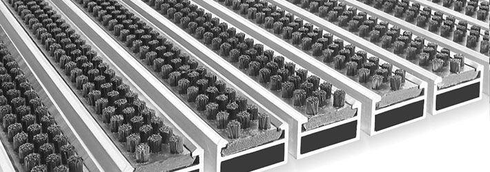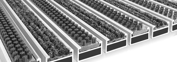 Между профилями с кассетами могут быть установлены профили-скребки для большей эффективности очистки подошв обуви. Профиля соединенных между собой тросом из нержавеющей стали который скрыт в специальную декоративную оболочку.