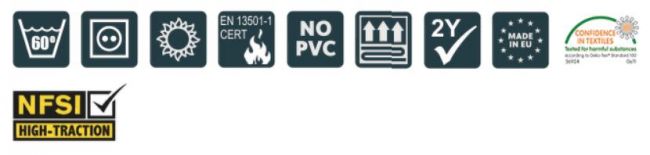Коврик очень прочный. Полиамидные волокна прочно в паяны в латексную основу. Данная технология Соединение двух материалов обеспечивает многолетнее использование даже в местах с повышенным пешеходным движением. Ковер не содержит вредного ПВХ, он не рвется не переламывается. Коврик подходит для полов с подогревом. Он устойчив к ультрафиолету долгое время отстояться первоначального цвета живого и насыщенного.