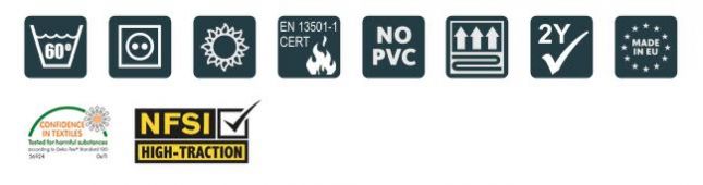 Коврик очень прочный ,полиамидные волокна надежно впаяны в резиновое основание. Эта комбинация гарантирует длительный срок службы в зонах с высокой пропускной способностью. Кроме того, Iron-Horse XL не содержит вредного ПВХ, не ломается, не рвется Коврик можно использовать для полов с подогревом. Он устойчивость к ультрафиолету не выцветает, его цвета остаются живыми и насыщенными долгое время.