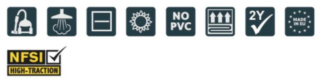 Water Horse также не скользит. Нижняя часть ковра изготовлена из 100% нитрильного каучука. Это уменьшает риск скольжения, падения и возможных травм. Ковер невероятно прочен. Его основание и ворс из полипропилена чрезвычайно устойчива к различного родам нагрузкам . Кроме того, приподнятые края помогают эффективно удерживать воду. Water-Horse не содержит вредного ПВХ, не ломается, не рушится и не рвется. Коврик можно использовать для полов с подогревом. Он устойчивость к ультрафиолету не выцветает, его цвета остаются живыми и насыщенными долгое время.
