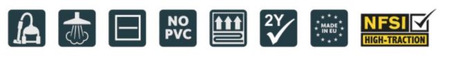 Он гигиеничен : антибактериальное вещество на основе частиц серебра вводится в структуру ковра . При такой обработке ковра предотвращается роста бактерий и грибков а также нейтрализуется запахи. Он также устойчив к маслам, жирам и растворителям. Антимикробное вещество постоянно присутствует в ковре, не испаряется, не смывается. Коврик подходит для полов с подогревом. Коврик Kleen-Thru Plus имеет перфорированную структуру, что обеспечивает эффективный отвод жидкости . Независимо от того, будет ли это вода, сок или другая жидкость, она будет эффективно удалена с коврика, минимизирует вероятность скольжения.